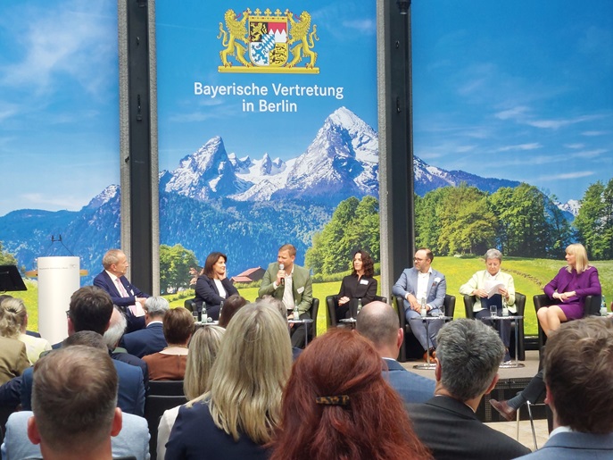 Damit das so bleibt, müssen die Rahmenbedingungen im ländlichen Raum attraktiv bleiben bzw. wieder attraktiver werden. Wie das gelingen kann, wurde in der anschließenden Paneldiskussion thematisiert. Die Gesprächsrunde, bei der es vor allem um die Themen der ländlichen Entwicklung, regionalen Wertschöpfung und Diversifizierung ging, moderierte Tilmann Schöberl (Hörfunk- und Fernsehmoderator; „Jetzt red i“). Gesprächsteilnehmende neben den beiden Gastgeberinnen waren Dr. Olaf Heinrich (Bürgermeister der Stadt Freyung und Bezirkstagspräsident Niederbayern), Eva-Maria Brunlehner (Landwirtin und Vertreterin von NEU.LAND), Tobias Babel (Landwirt des Jahres 2024) und Beatrice Kress (Gesellschafterin der Bergader Privatkäserei).
